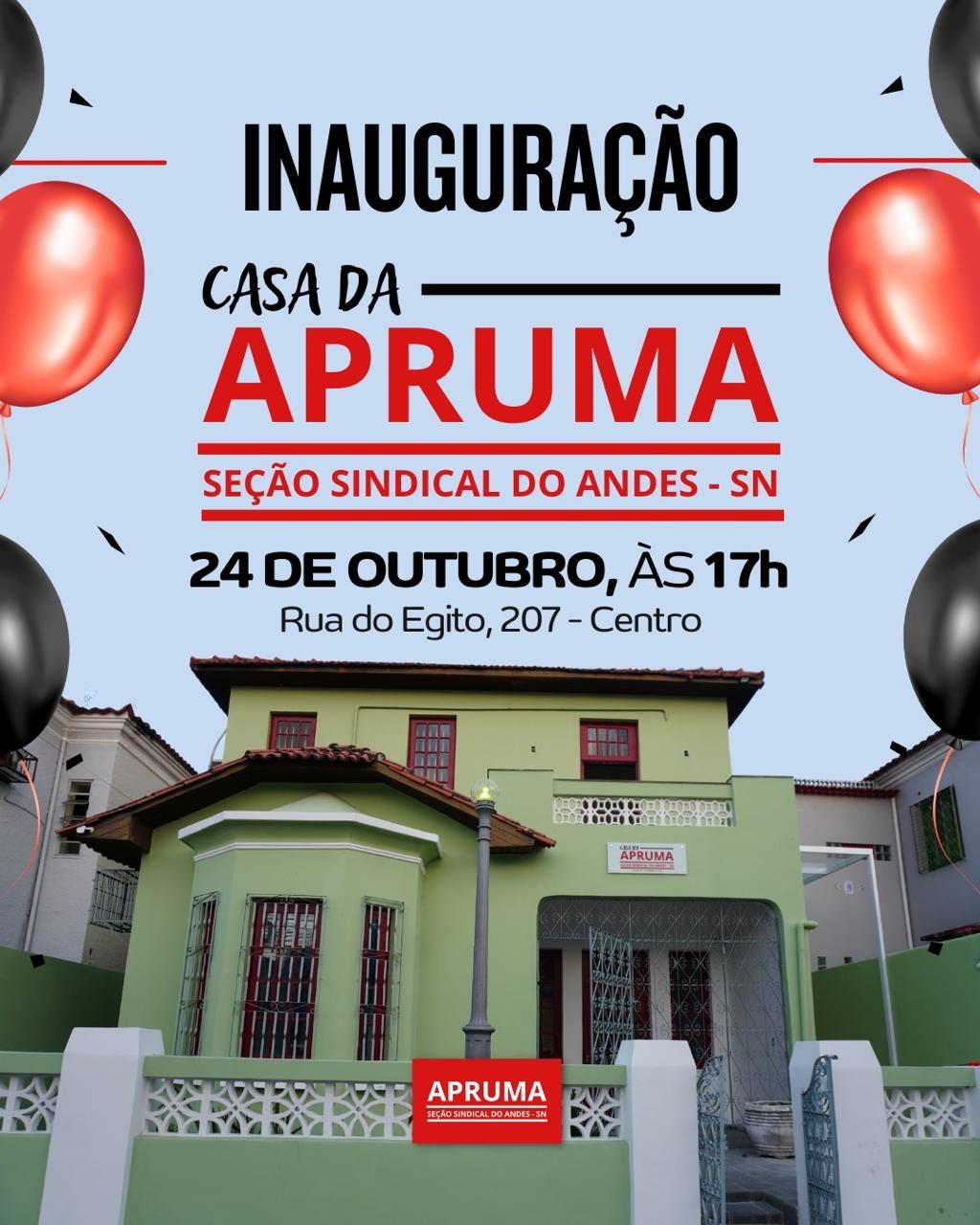 Agência Tambor – Sindicato de sede nova. A Apruma (Seção Sindical do Andes-SN) inaugura nesta sexta-feira (24) a Casa da Apruma, um novo espaço voltado à convivência, cultura e lutas coletivas. O evento será realizado a partir das 17h, na rua do Egito, nº 207, no Centro Histórico de São Luís.