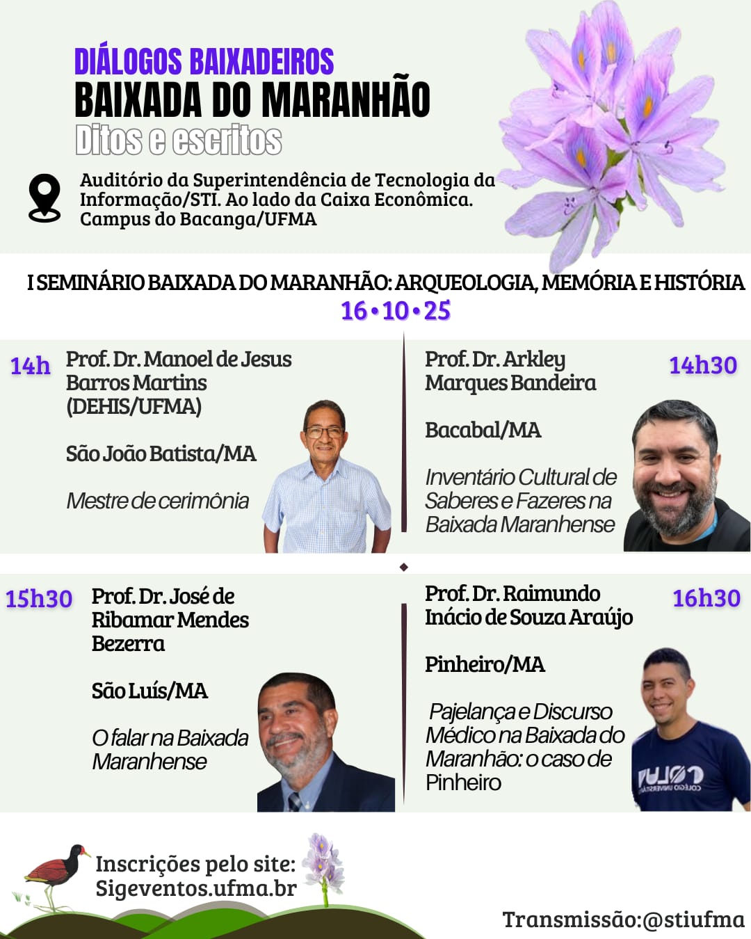 O próximo evento da jornada de ditos e escritos sobre essa importante região será o “I Seminário Baixada do Maranhão: Arqueologia, Memória e História”, dia 16 de outubro, das 14h às 16h30, no auditório da Superintendência de Tecnologia da Informação da UFMA, no campus do Bacanga, ao lado da Caixa Econômica.