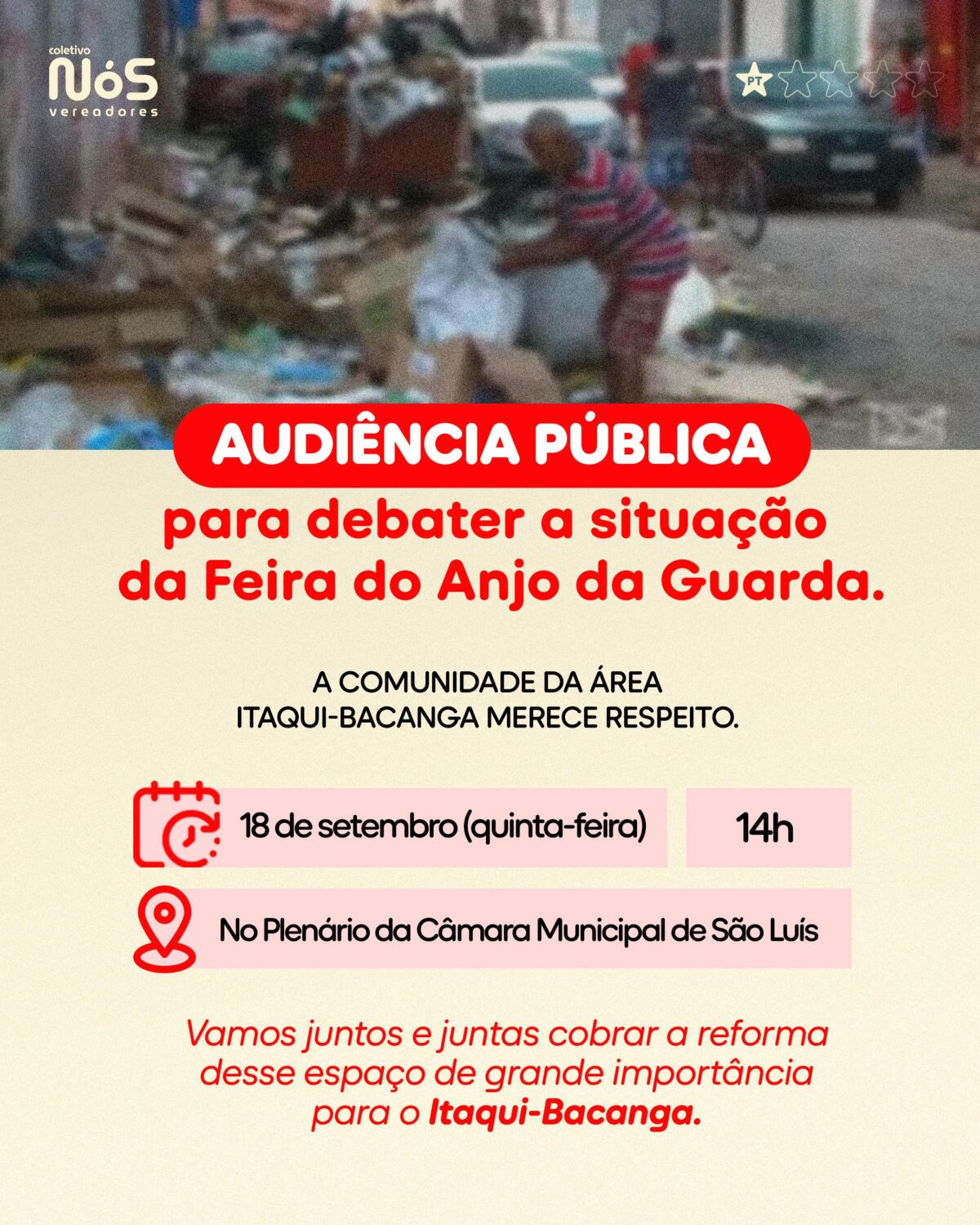 “Os feirantes e a população do Anjo da Guarda e região merecem ter mais dignidade! A situação da feira não pode continuar assim”, enfatiza Luis Augusto Nascimento, diretor da rádio e uma das lideranças que mais vem lutando pela revitalização desse importante equipamento de trabalho e renda no bairro.